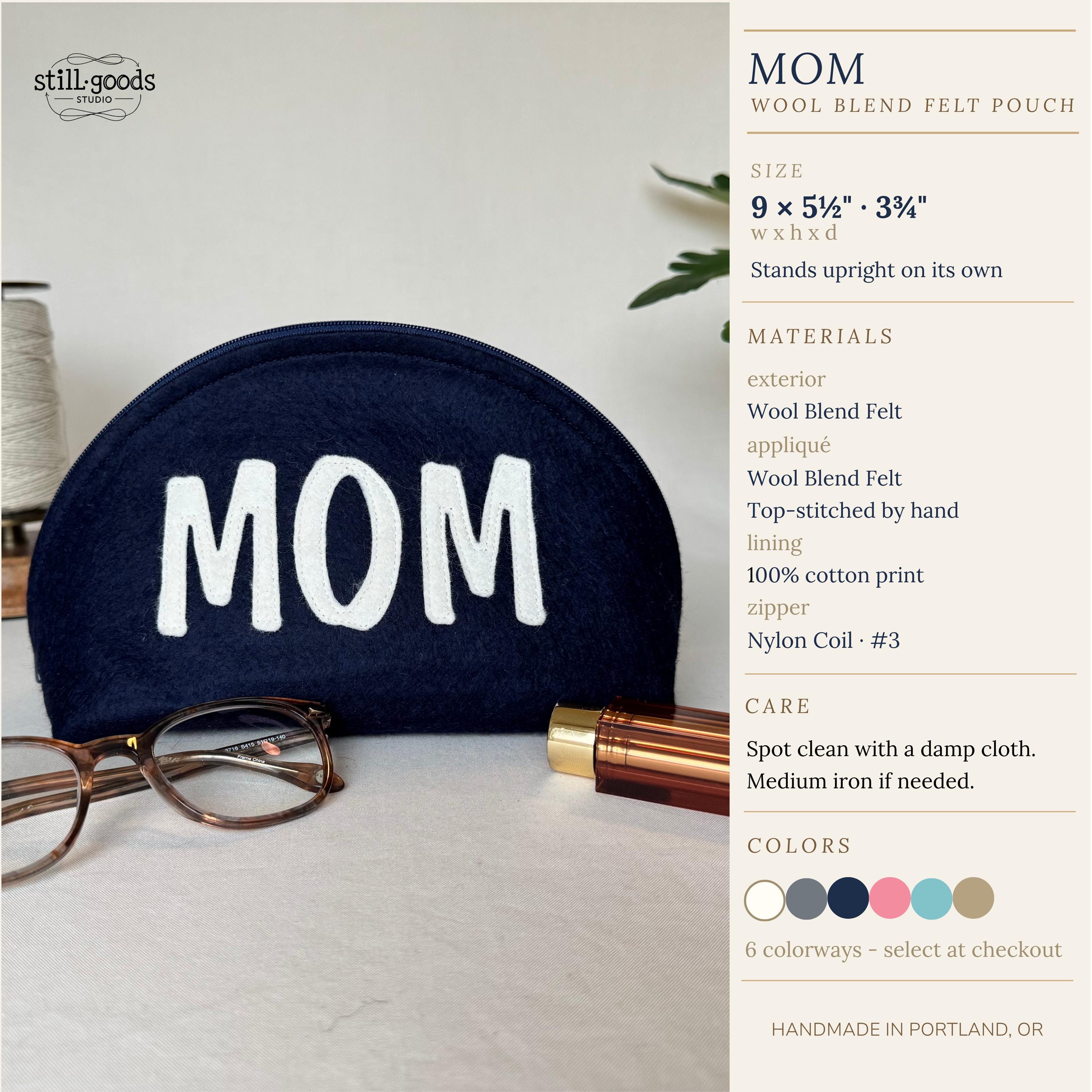 Soft, classic, and just right for Mom. This wool blend felt pouch features a bold MOM appliqué — handmade and ready to be used every day. A Mother's Day gift that feels as thoughtful as the person you're giving it to.
