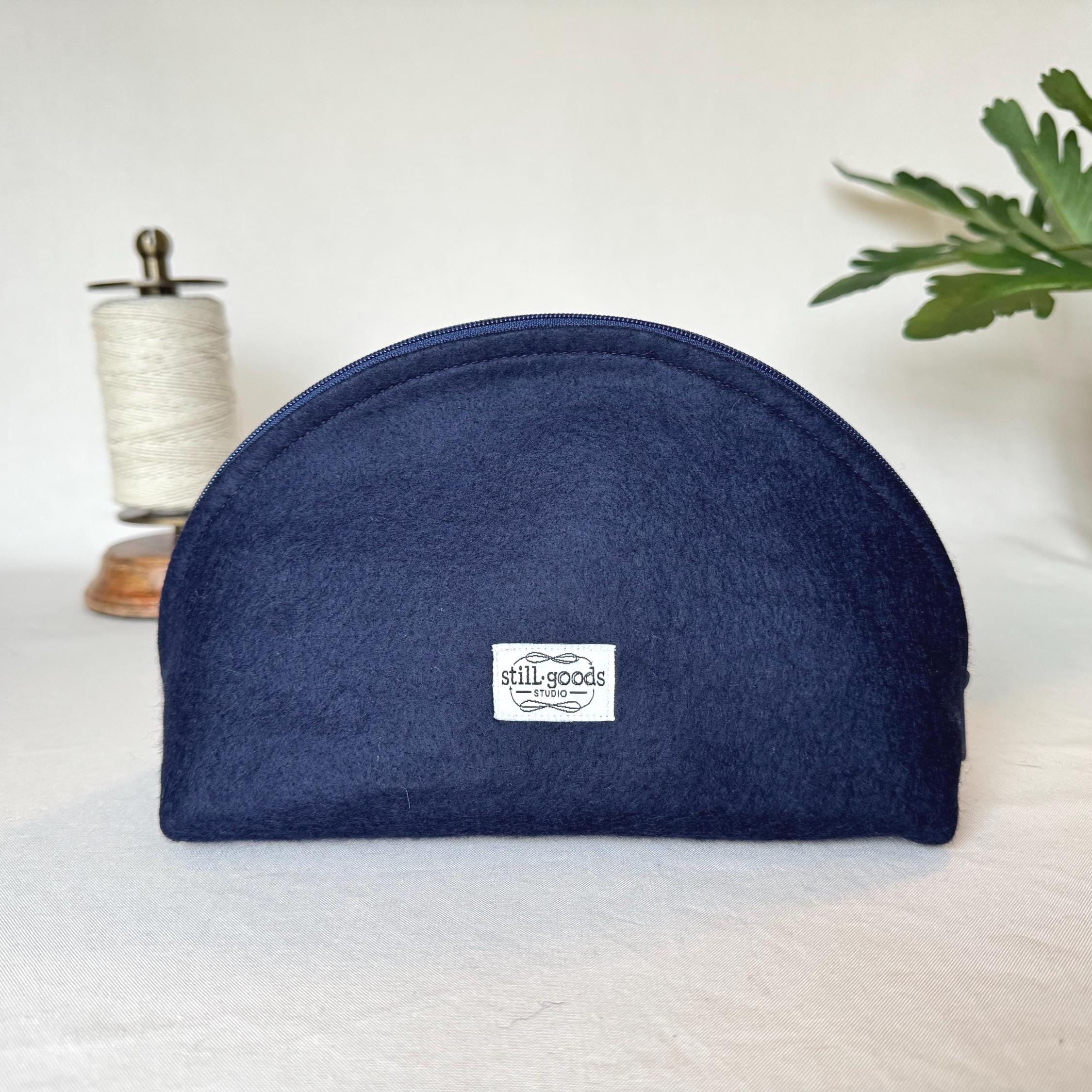 - Distinctive half-dome silhouette — stands upright on its own - MOM appliqué in contrasting felt, top-stitched - Matching zipper with easy-pull tab - Printed cotton interior lining — coordinated to your bag color - 9" wide × 5½" tall × 3¾" deep - Fits makeup, jewelry, daily meds, earbuds, cables, small notebook and pencils