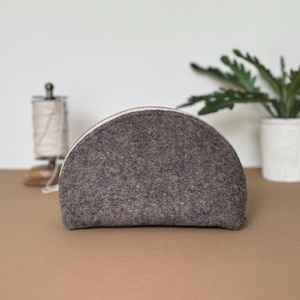 ✦ FEATURES - Genuine Pendleton wool exterior in cream, red, green, and black stripe - Half-dome clamshell silhouette — stands upright on its own - YKK metal zipper with antique brass pull, cream zipper tape - 100% cotton interior lining - Optional hand-lettered or typed interior message (+$10) - Approx. 9" wide × 5 1/2" tall x 3 3/4" deep